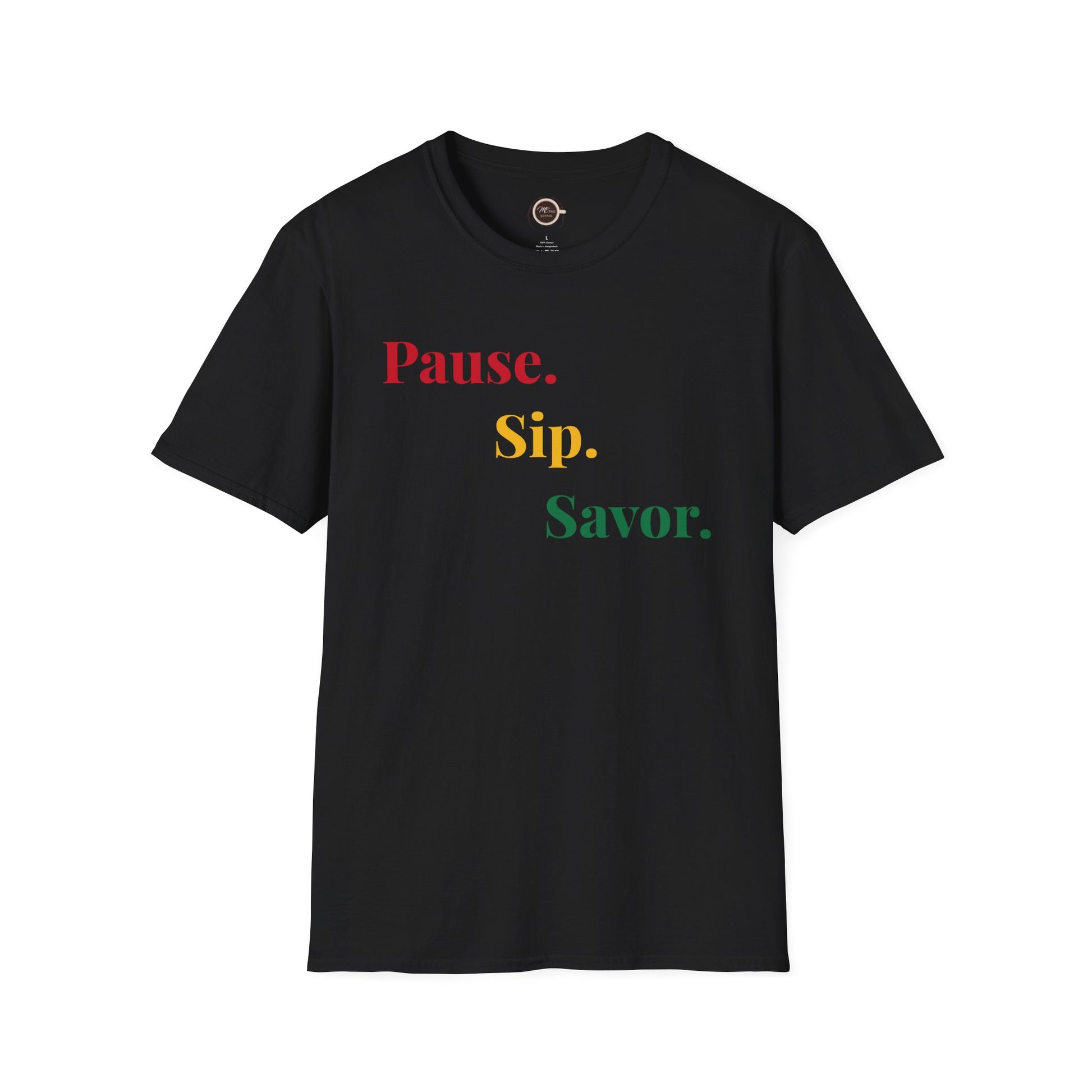 Celebrate freedom, pride, and intentional living with our limited edition Juneteenth "Pause, Sip, Savor" T-shirt.
